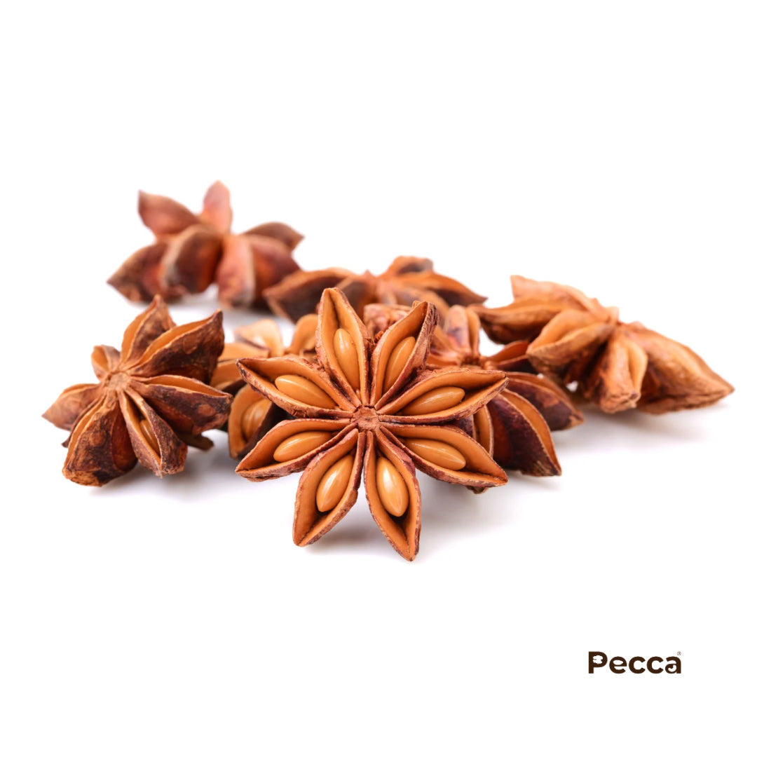 Star anise, or chakri phool, is a star-shaped spice with a sweet, licorice-like flavor — perfect for curries, teas, and spice blends.